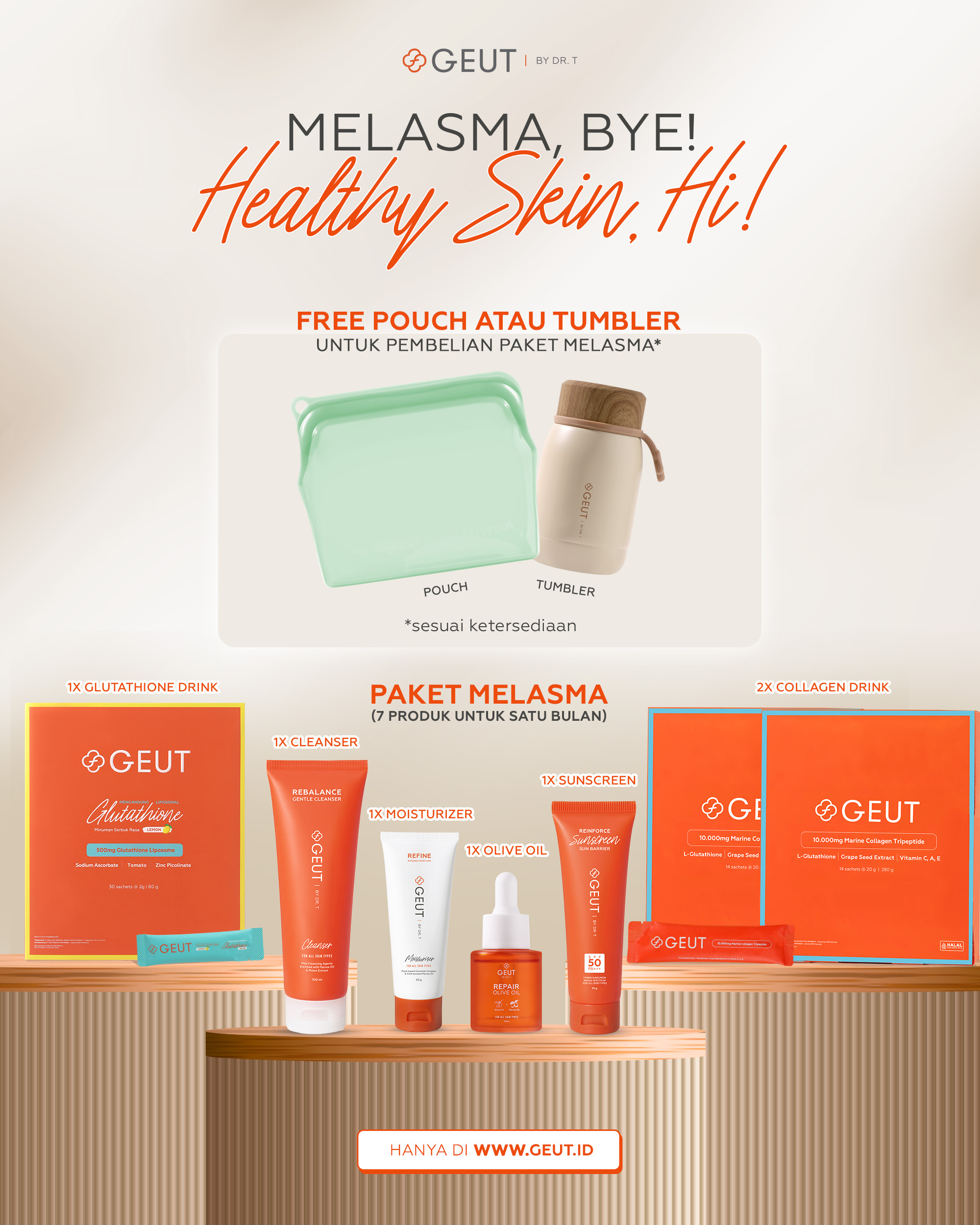 Seluruh rangkaian produk GEUT BY DR. T mengutamakan antioksidan sebagai pemeran utama pada setiap pemilihan bahannya. Beragam nutrisi dipadu padankan menyesuaikan dengan kebutuhan kulit sehat yang memiliki nutrisi seimbang.
