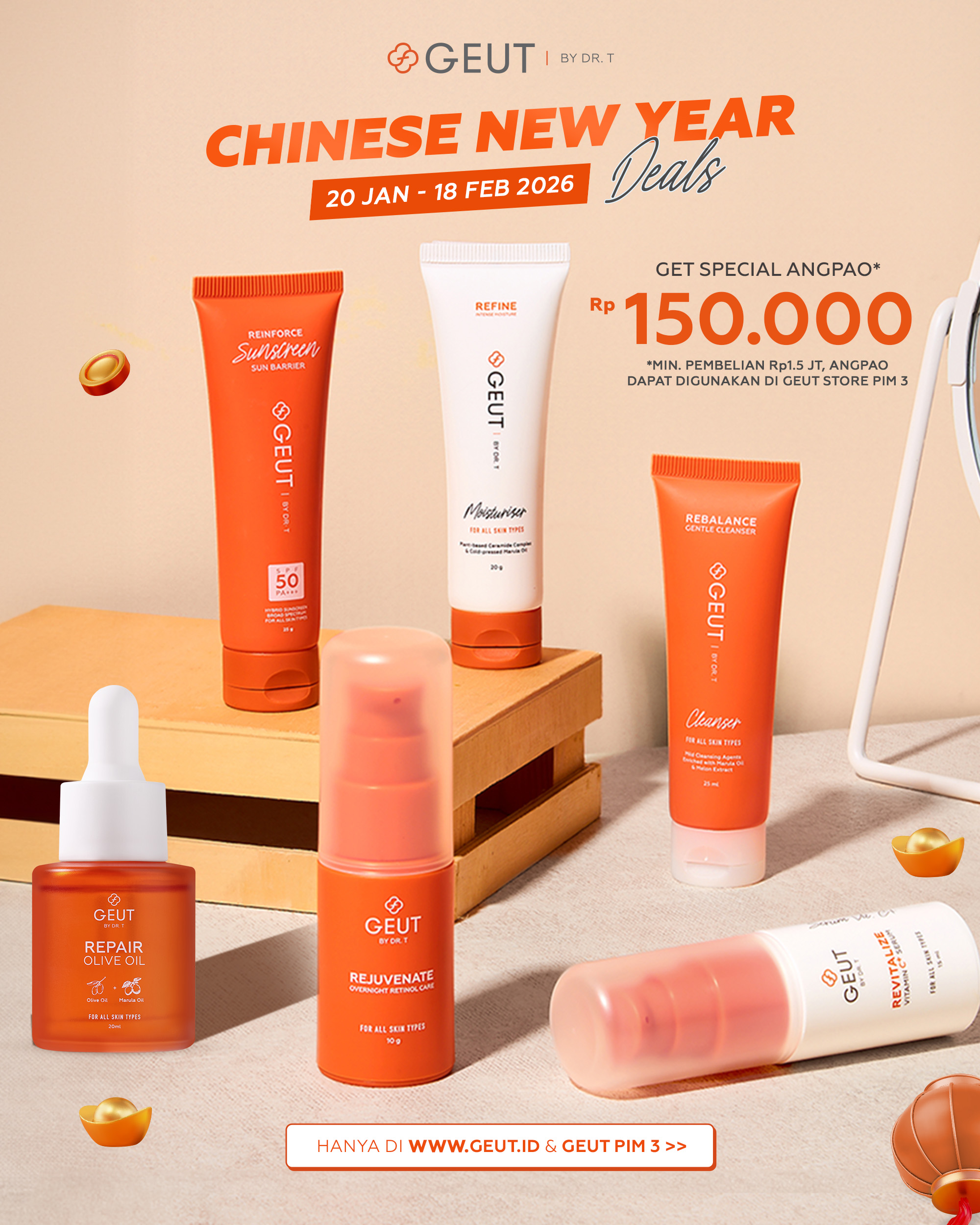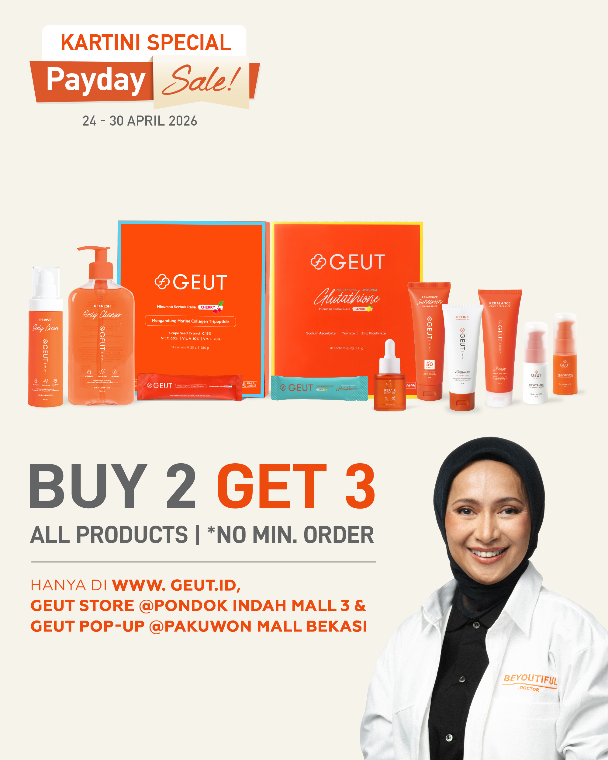 Seluruh rangkaian produk GEUT BY DR. T mengutamakan antioksidan sebagai pemeran utama pada setiap pemilihan bahannya. Beragam nutrisi dipadu padankan menyesuaikan dengan kebutuhan kulit sehat yang memiliki nutrisi seimbang.